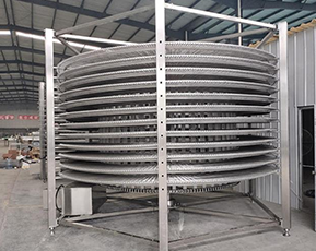 ●SUS304網(wǎng)帶抗拉力強高,使用其壽命大大延長,網(wǎng)帶兩側(cè)鏈片上設(shè)置擋邊,防止物料的滑落,適用于不同凍品的單凍及盤凍。